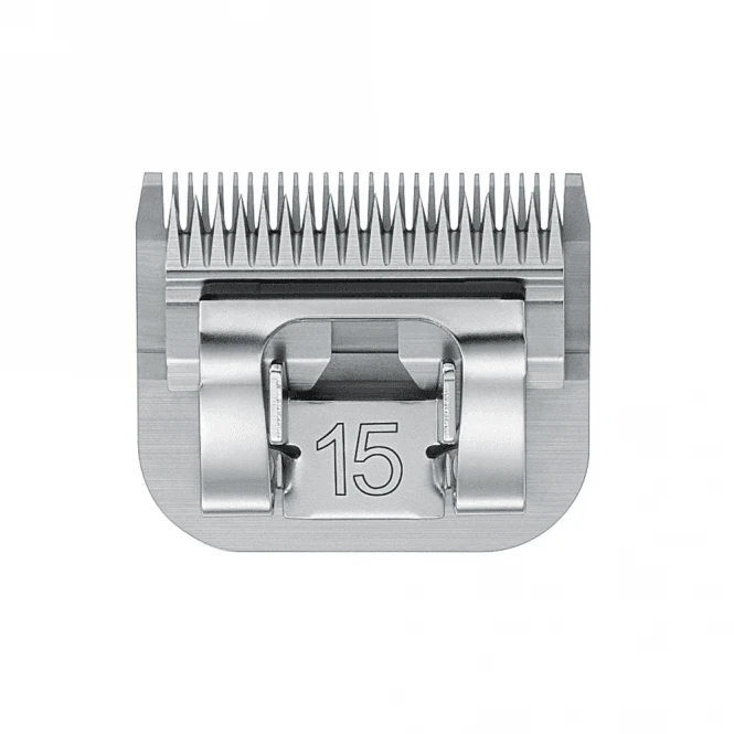 The Aesculap #15 FAV5 Snap-on Blade is a quality replacement blade constructed from carbon steel, honed and shaped by experienced German craftsmen. The blade features an outstanding finish with lasting anti-corrosion protection for ultimate durability. This universal replacement blade is designed for use with the Aesculap FAV5 clipper, but it will also fit any Andis, Oster or Wahl clipper with an A5-style snap-on blade mechanism.