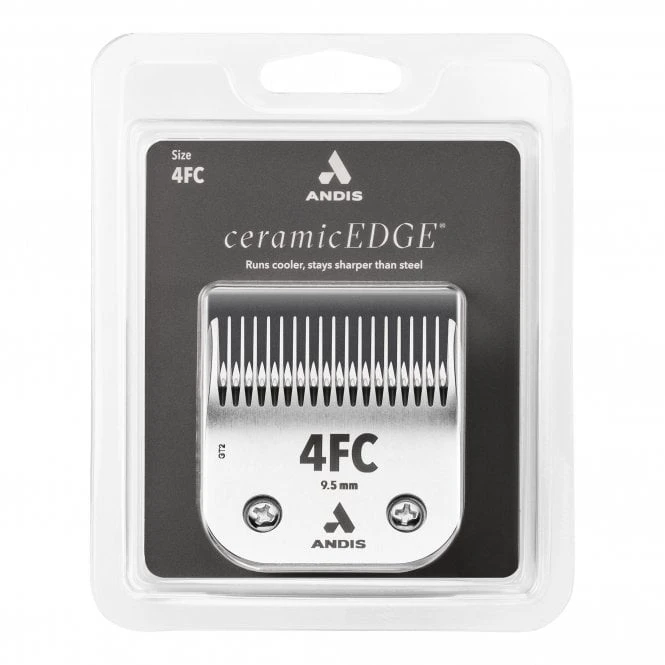 The Andis #4FC CeramicEdge Clipper Blade is a replacement blade featuring a ceramic cutter insert made from high-grade ceramic, which will stay sharp for up to ten times longer than traditional stainless steel blades. The blade also resists heat for a cooler, more comfortable clip, helping to avoid clipper rash from hot blades. The ceramic technology featured here offers a lower heat transfer and friction index than traditional blades, running on average 50% cooler than steel. This quality universal replacement blade will fit any A5 type Andis, Oster or Wahl clipper with an snap-on blade mechanism.
