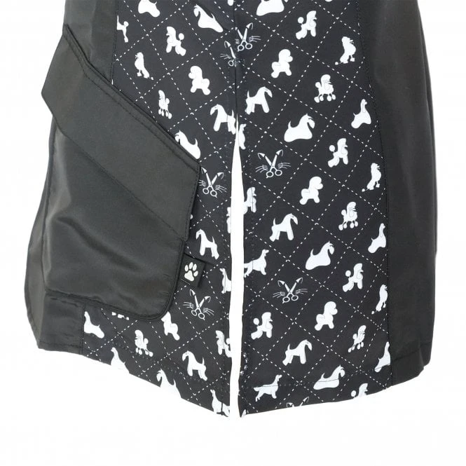 It has a front zip fastening so it easily slips on and off, with two large pockets to store grooming equipment and side splits for ease of movement. The stylish mandarin collar ensures that flying hairs stay away from your neck, where they could easily irritate.
