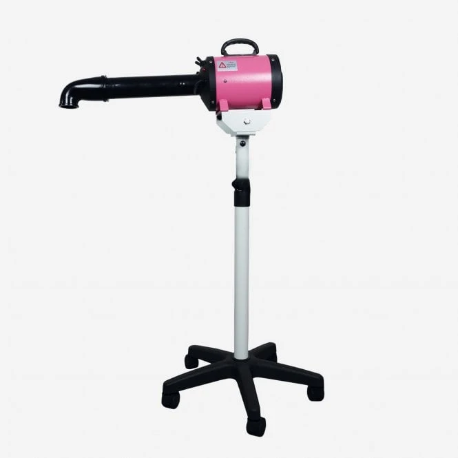 This dryer comes with a drying arm, a uniquely flexible blaster hose and three interchangeable drying nozzles, which can be attached with a simple snap on connector. Features a stable, height adjustable stand and removable filters.