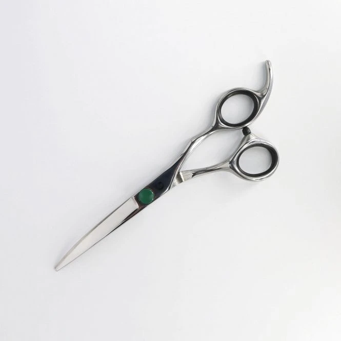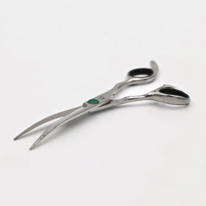 Made from recycled stainless steel, which is wear and abrasion resistant. The Groomers Simply G curved scissor has a flat green ball bearing screw for adjustable tension. Tension key included.