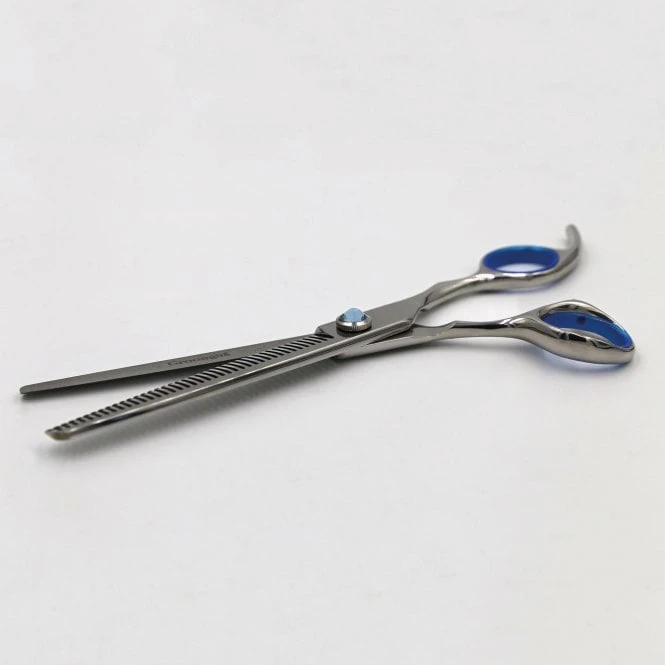 The Topaz range is a beautifully made collection of blue gemmed scissors, crafted from high quality, sturdy stainless steel that offers precision and excellent performance. Ideal for professional groomers wanting to add some class and dynamism to their scissor collection, these scissors are designed to last and work beautifully through heavy-duty cutting and professional everyday use.