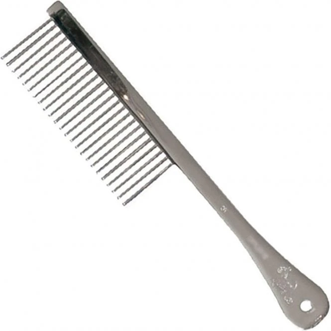 The Spratts Coarse Comb #70 is a wide-toothed comb designed to untangle canine hair. This quality British-made comb features individually hand set teeth, and is backed with brass and an extra dense chrome plating. Ideal for show coats, this comb is specifically designed for Poodle grooming.